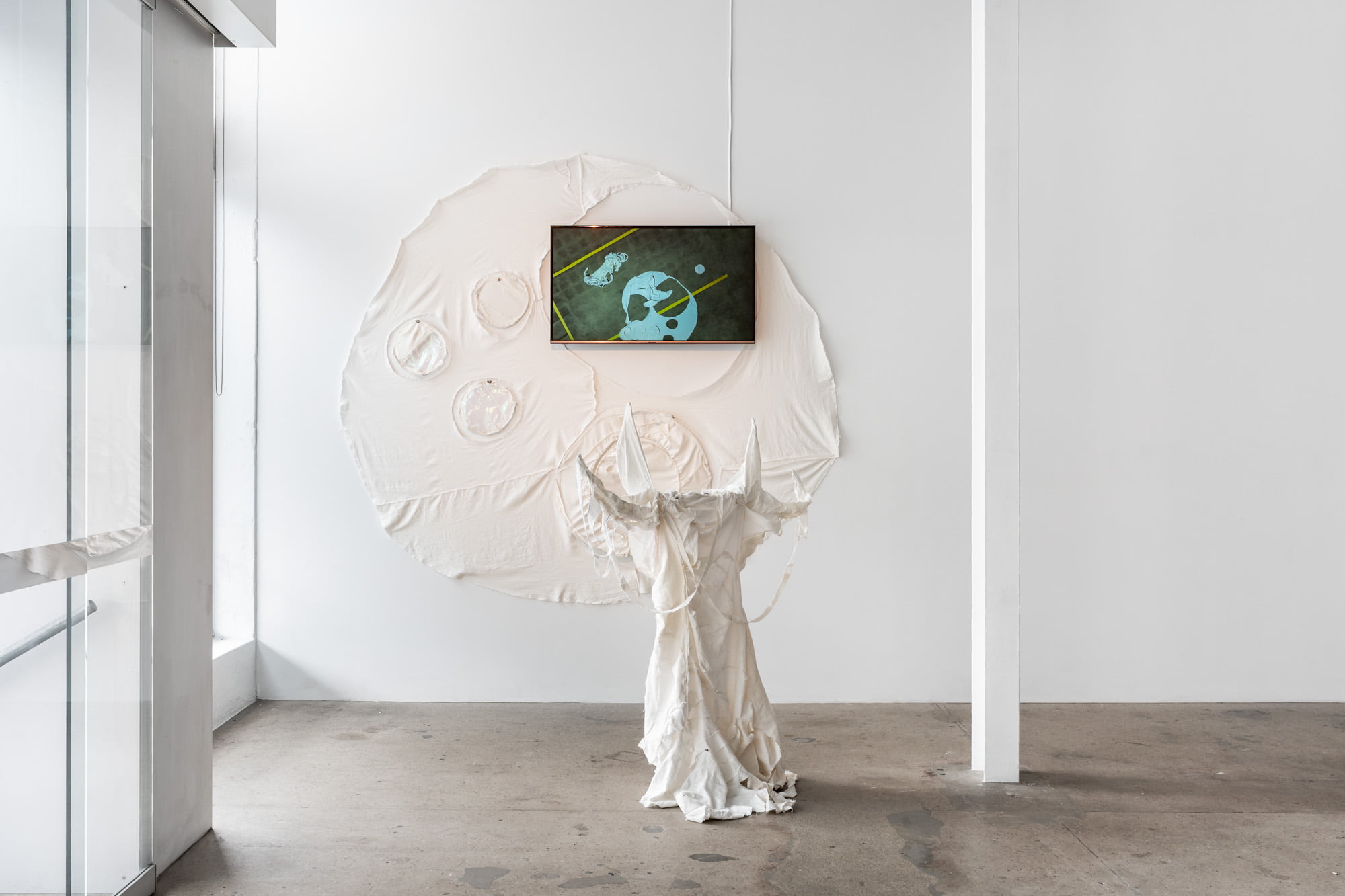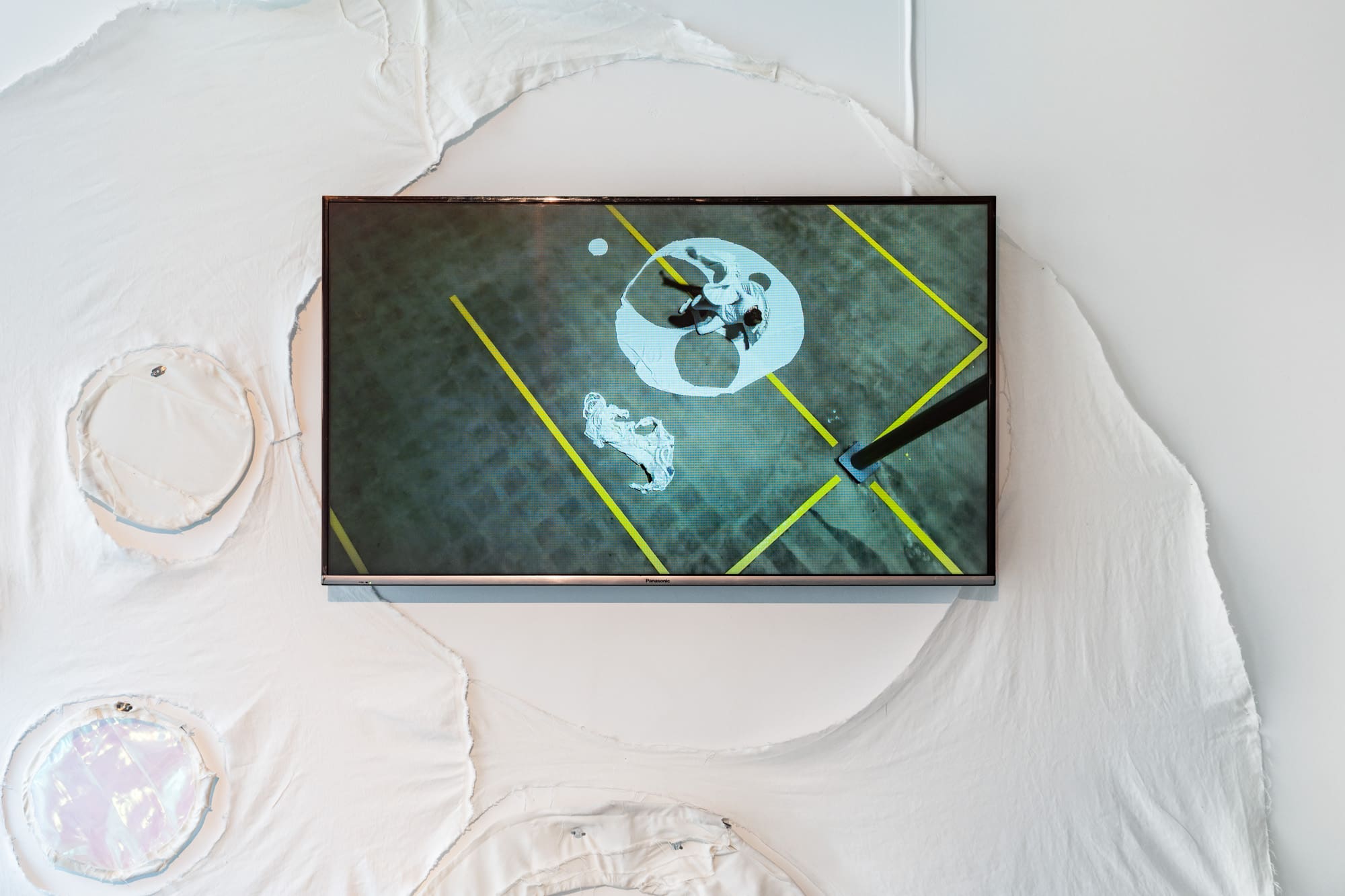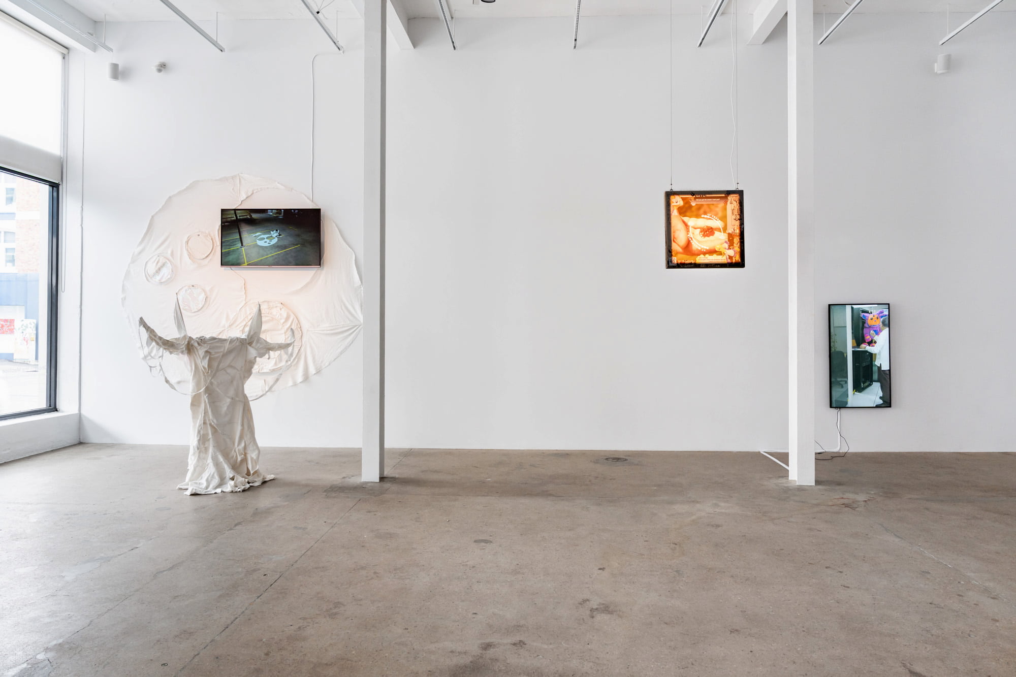 Celine Cheung, Fei Gao, Kalanjay Dhir, Rainer Ciar. Ghost in the Machine, 2025. Exhibition view, Outer Space, Brisbane. Photograph: Louis Lim. Courtesy of Outer Space.